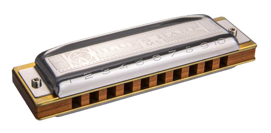 フォーク、ブルース、ロックなどで幅広く使われており、ブルースハープやブルースハーモニカとも呼ばれていますが、正式にはテンホールズハーモニカ(10Holes Harmonica)と言います。手のひらにすっぽり収まる10穴のコンパクトサイズですが、中央の4穴で1オクターブをカバーし、上下の音階は和音演奏を考慮した音階配列になっています。ベンド奏法により音程を半音下げたり特殊な効果を出すことができます。