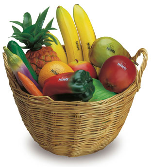 | ニノ フレームドラム バッファローの皮でできたヘッドを木製のマレットで叩いて演奏します。フレームドラムの温かい音色や、人の身に直接伝わる振動は様々な音楽活動に利用できます。 NINO553(12.5″)完売 NINO554(15″) 完売 | ニノ ウッドアゴゴNINO561 木製のアゴゴをマレットで叩くとパワフルな音が響きます。また、側面をこすればギロのように演奏できます。 ラバーウッド 4.5″×16×26cm 227g マレット付属 ¥5,500 | ニノ トーンタングNINO 556 8枚の木の板を1つずつ叩くと、木琴のように違う高さの音が鳴ります。内側にビー玉などを入れ回転させると音程が変化する連続音を楽しめます。 ラバーウッド 11×11×25cm 269g ¥6,820 | ニノ フルーツアサートシェイカーVE18-NINO536 野菜型、果物型の18個のシェイカーです。パイナップル×1 オレンジ×2 オレンジ小×1 リンゴ×3 洋ナシ×3 バナナ×3 キャベツ×1 パプリカ×1 ナス×1 ズッキーニ×1 ニンジン×1 φ28×22(バスケット)1800g ¥44,000 |