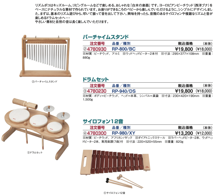 リズム・ポコオリジナルドラムセットRP-1500/DSのセット内容 化粧箱入り 取り扱いについて