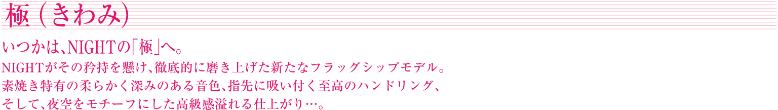 「素焼き」の柔らかな音色、究極のフィット感、高級感あふれるカラーリング。