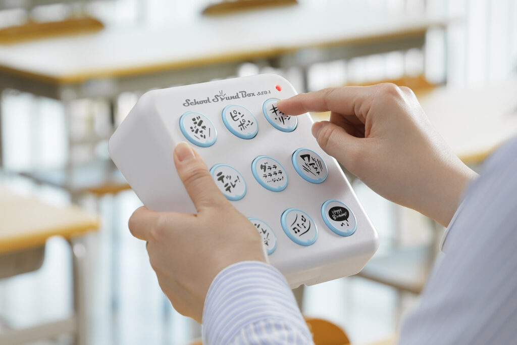 学校生活の様々なシーンで活用できる効果音を9種類収録したサウンドボックス。盛り上げたい時、メリハリを付けたい時、集中させたい時など、シーン毎に使いやすい効果音を厳選。ボタンを押す毎に再生/停止する簡単操作。電池駆動で小型軽量。