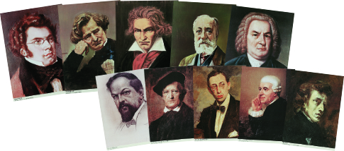 収録作曲家:バレストリーナ/コレルリ/ヘンデル/J.S.バッハ/グルック/ハイドン/モーツァルト/ペートーヴェン/ウェーバー/ロッシーニ/シューベルト/ペルリオーズ/メンデルスゾーン/ショパン/リスト/ワーグナー/ヴェルディ/グノー/ブルックナー/ブラームス/ビゼー/サン=サーンス/チャイコフスキー/グリーグ/リムスキー=コルサコフ/フォーレ/プッチーニ/ドビュッシー/リヒャルト=シュトラウス/ラヴェル/ストラビンスキー/滝 廉太郎/山田 耕筰/中山 晋平/弘田龍太郎