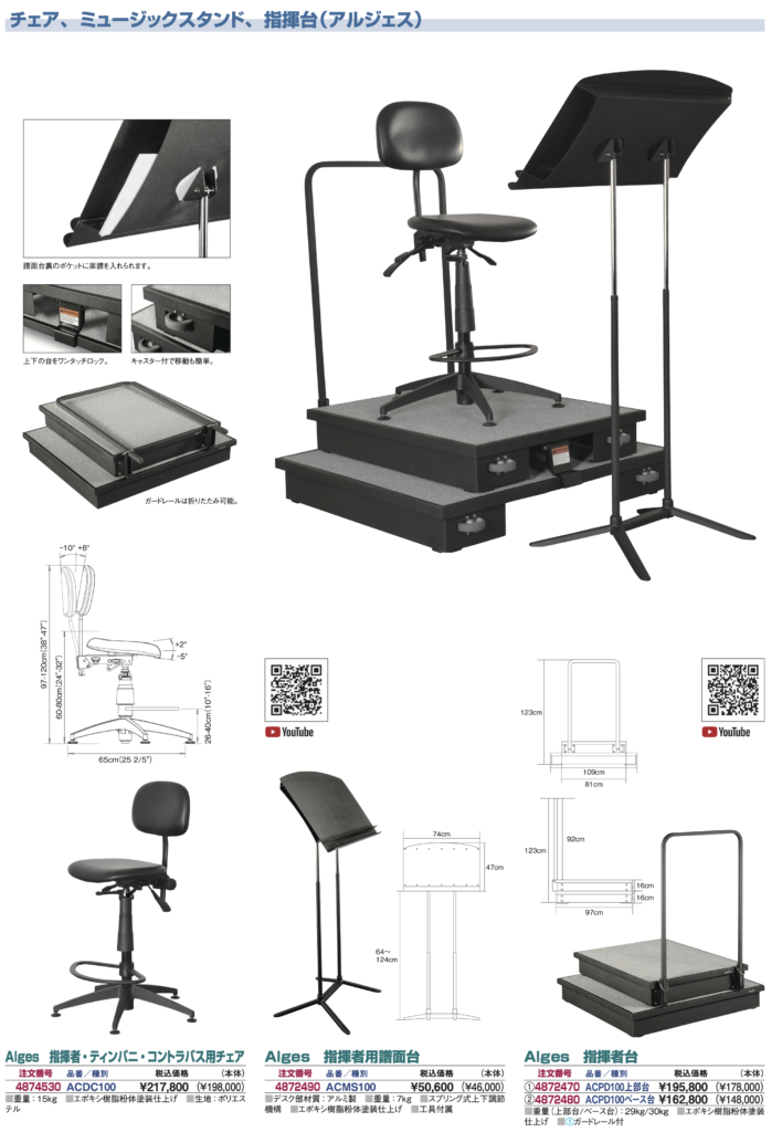 ※合唱台につきましては大型商品につき配送料を別途お見積もりいたします。指揮者スタンドは配送無料です。