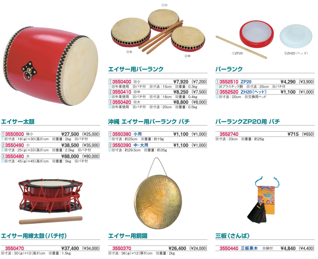 ※エイサー楽器は送料無料でお届けいたします。オプションのみの注文は合計8000円から送料無料です。