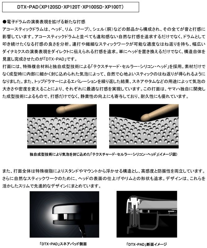 YAMAHA DTXT SPECIAL Set DT×TJ(トリガーモジュール)×1 RHP120SD(リアルヘッドパッド12"SD用)×1 RHP120(リアルヘッドパッド12")×1 RHP100(リアルヘッドパッド10")×2 KP120(リアルヘッドキックパッド12")×1 TP80S(リムスイッチ付パッド)×1 PCY80S(リムスイッチ付シンバルパッド)×2 PCY10(シンバルカップ用パッド)×1 HH80A(ハイハットコントローラー)×1 RS100(ラックシステム)×1 SS642(スネアスタンド)×1 単品画像 完売 ※別売オプション:キックフットペダル1、2/イスDS840完売、イス2/防振台「たいこばん」TKB1完売 /ラック&スタンド (たいこばん増設ユニットTKB1Uは完了となりました) |