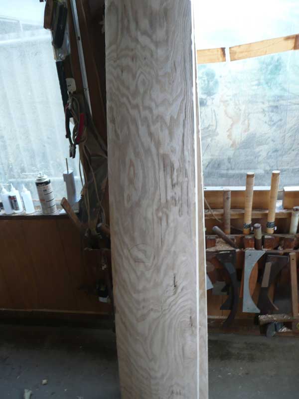 丸太から木取られた桐を一年以上野ざらしで天然乾燥させてから、刳(く)り、板付、彫りなどを経て甲をつくります。