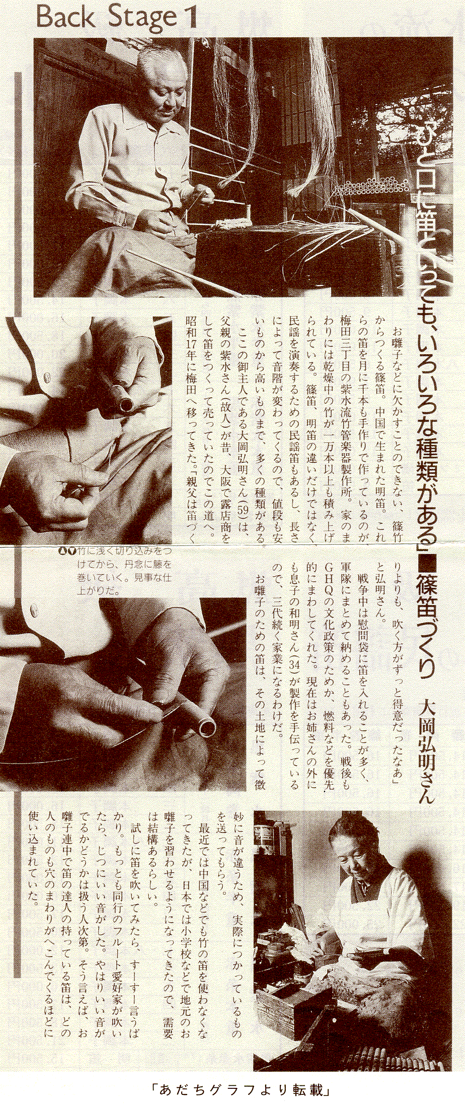 紫水流民謡笛は、大正元年、先代大岡 明(紫水)により創業。 現在、二代目大岡弘明氏により 「紫水流竹管楽器」を製造