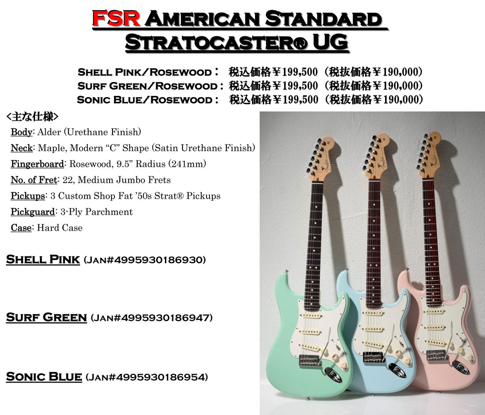 ※Fender American Standard Stratocaster UGは送料無料でお届けします。カラーをご指定ください。各カラー80本限定モデルにつき売り切れの際はご容赦ください。